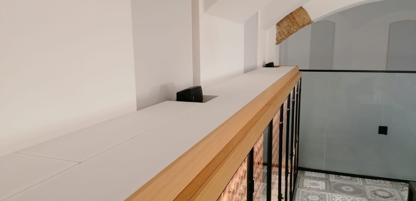 - Integration von Akustikelementen ohne optische Beeinflussung der historischen Architektur und dessen neu adaptierten modernen Interior Designs.